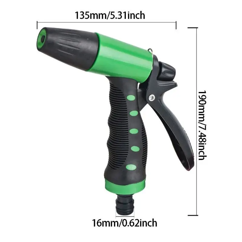 Además de su funcionalidad, esta pistola de riego es fácil de usar y ajustar según tus necesidades. El sistema de conexión a una manguera de 1/2 pulgadas permite una integración sencilla, y su diseño ergonómico facilita el agarre y la dirección del rociado. Con esta pistola de riego, podrás mantener tu jardín en excelentes condiciones, fomentando un entorno verde y saludable.